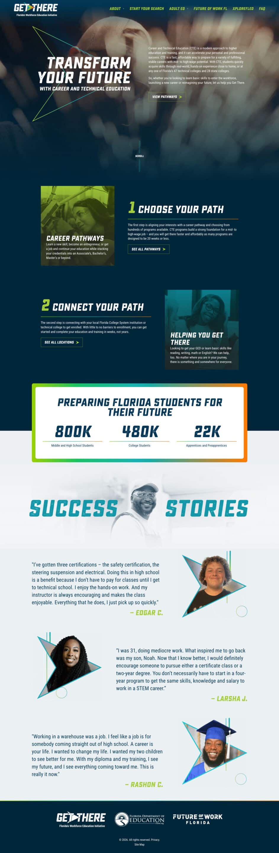 Moore and the Florida Department of Education launched "Get There," a statewide campaign that made CTE feel modern, empowering, and within reach. Through an integrated paid, owned, and earned media strategy, the campaign drove audiences to a digital hub connecting them directly with Florida's colleges and technical institutions.